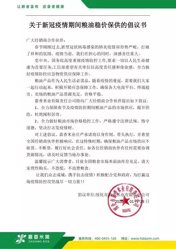 關(guān)于新冠疫情期間糧油穩(wěn)價(jià)保供的倡議書