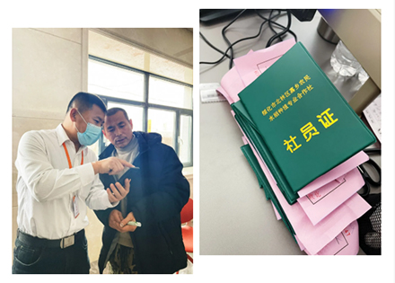 飄飛的雪花和零下十幾度的低溫并不能阻擋購種農(nóng)戶的高漲熱情,早上八點,苗氏種業(yè)大廳就已經(jīng)站滿了有序排隊等待購種的種植戶。服務臺一側(cè)的窗口是苗氏種業(yè)正在為農(nóng)戶登記、發(fā)社員證;
