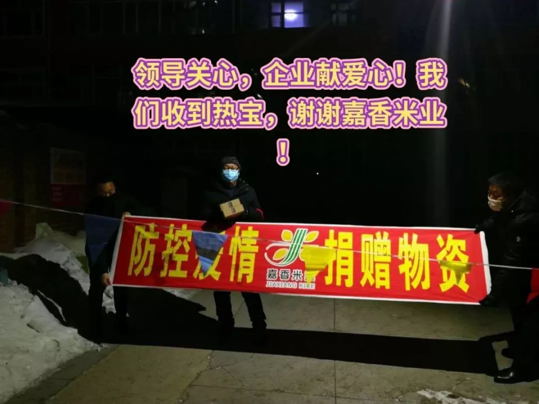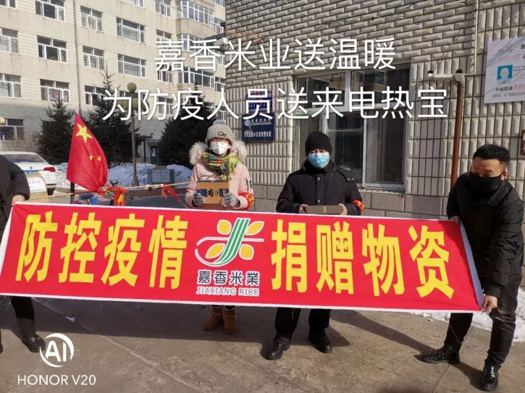 綏化市嘉香米業(yè)有限責(zé)任公司為支持奮斗在一線的疫情防控工作者早日打贏這場(chǎng)戰(zhàn)役,積極動(dòng)員各合作伙伴、關(guān)系單位和全體嘉香人,發(fā)揚(yáng)中華民族優(yōu)秀美德,踴躍奉獻(xiàn)愛心。為綏化北林區(qū)法院、綏化市公安交警大隊(duì)北林大隊(duì)、綏化市北林區(qū)人民檢察院、綏化市北辰街道辦事處、綏化市農(nóng)業(yè)農(nóng)村局、綏化市第三中學(xué)、綏化市雷鋒小學(xué)等機(jī)關(guān)干部小區(qū)值守人員捐贈(zèng)電熱暖寶近500個(gè)。